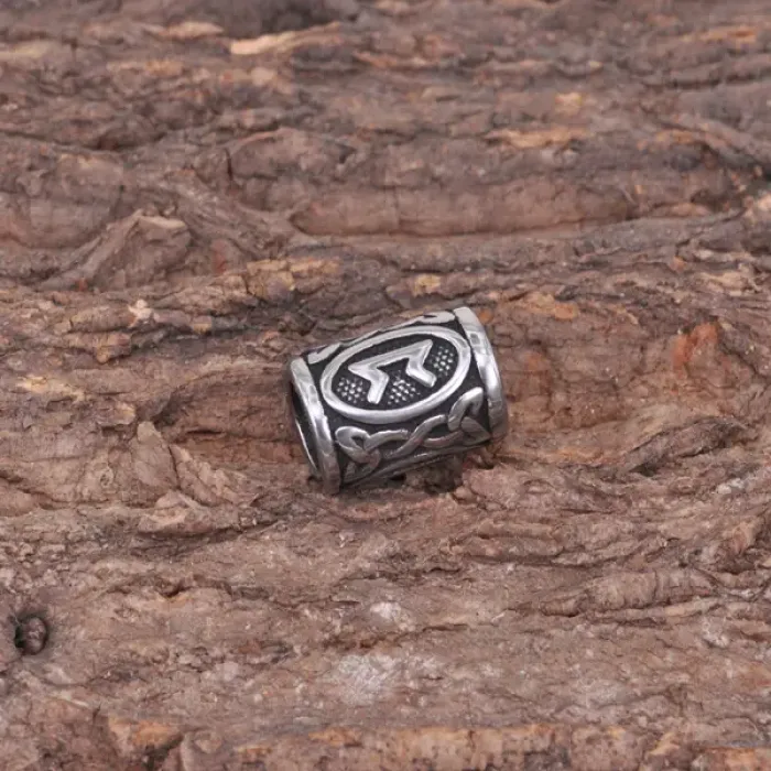 Бусина для волос Viking из нержавеющей стали с изображением руны Перт.