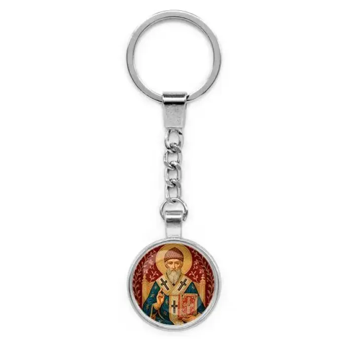 Круглый брелок, цвет серебро, с цепочкой, Спиридон Тримифунтский C1108022