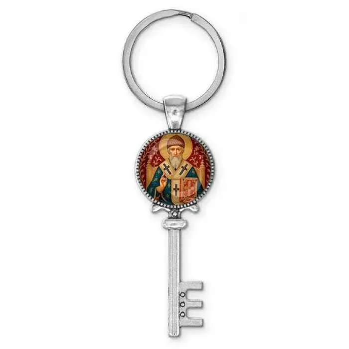 Брелок ключ, цвет серебро, с кольцом для ключей, Спиридон Тримифунтский C1108044