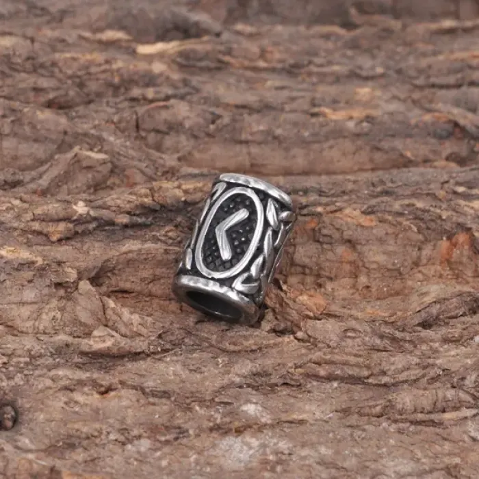Бусина для волос в стиле Viking с руной Кеназ, изготовленная из нержавеющей стали.