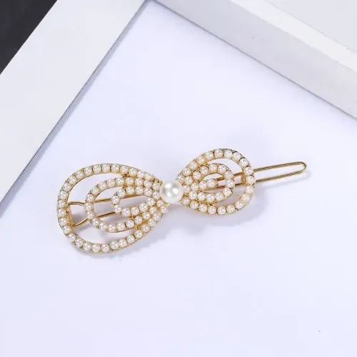 Заколка для волос в форме скрипки из бижутерного сплава с золотым покрытием и искусственным жемчугом.