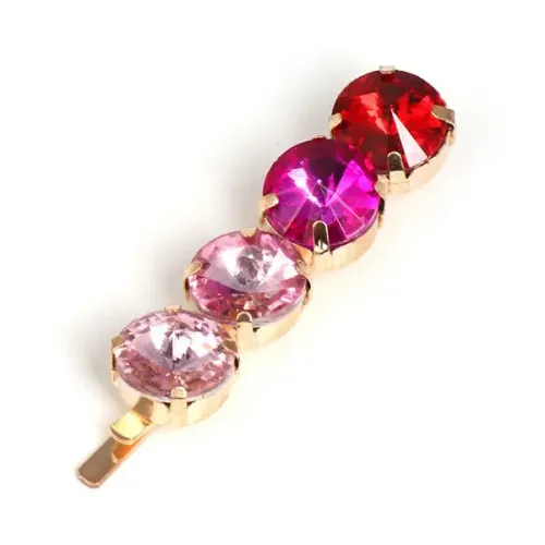 Заколка-шпилька для волос красно-розового цвета из бижутерного сплава с кристаллами.