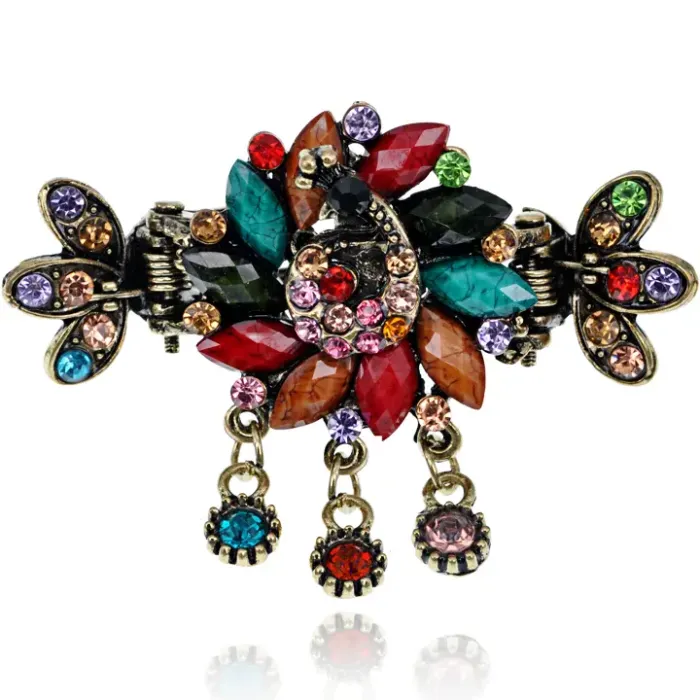 Заколка для волос из бижутерного сплава с дизайном в виде павлина.