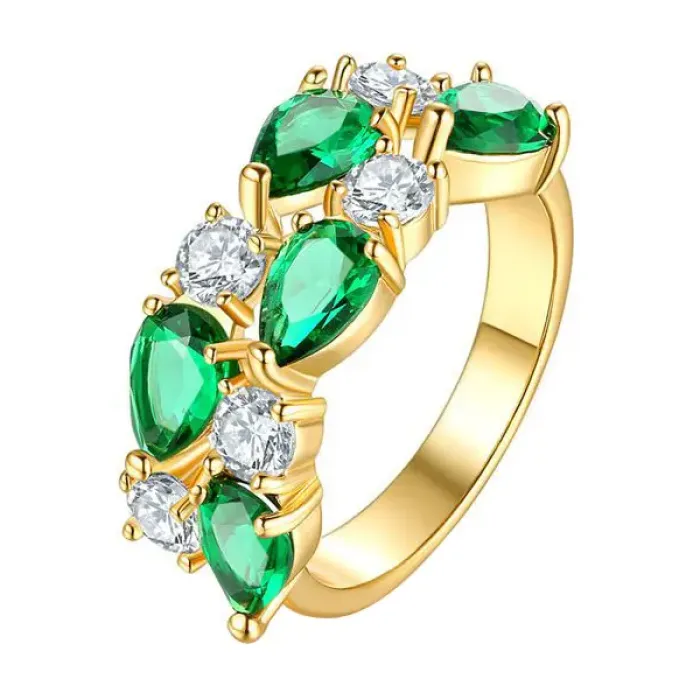 Кольцо из бижутерного сплава с позолотой и вставками из фианитов.