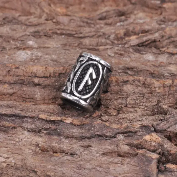 Бусина для волос из нержавеющей стали с изображением руны Ансуз.
