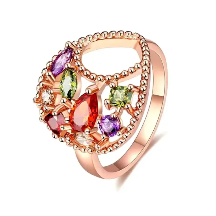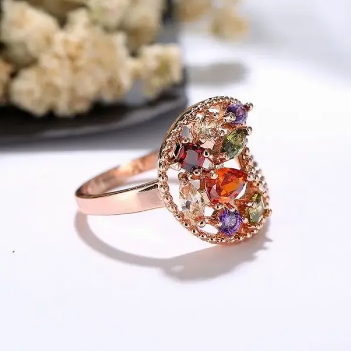 Кольцо из бижутерного сплава с позолотой и вставками из фианитов.
