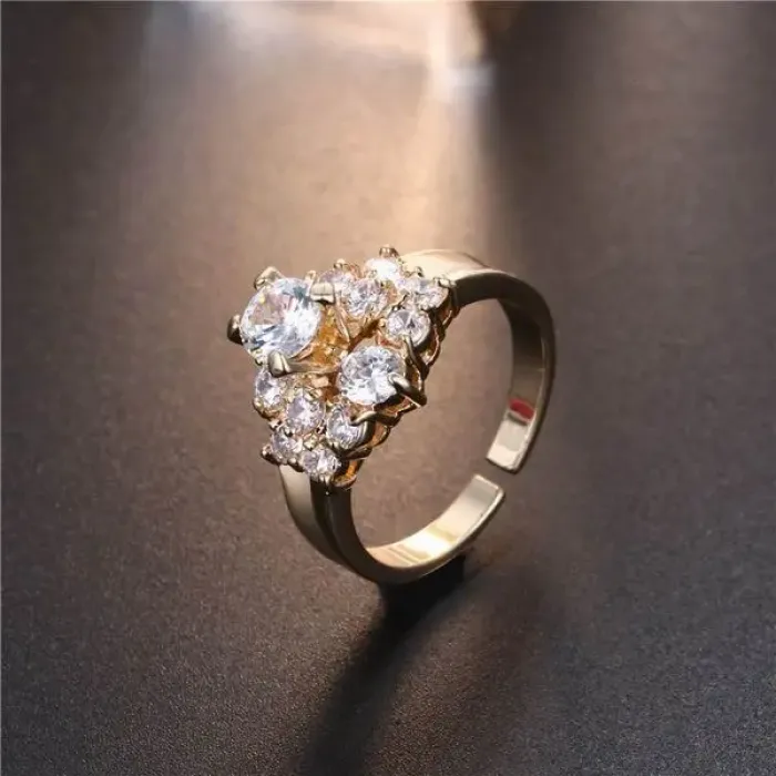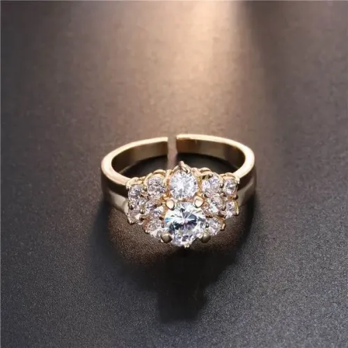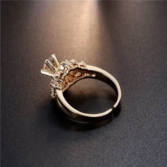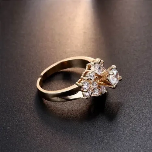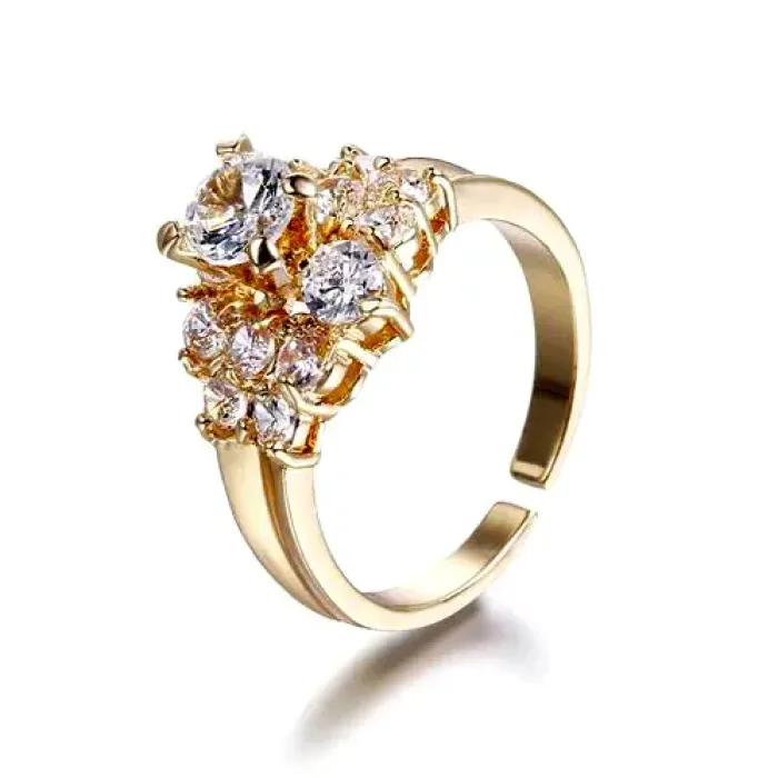 Бижутерное кольцо из сплава с покрытием под золото и вставками из фианитов.
