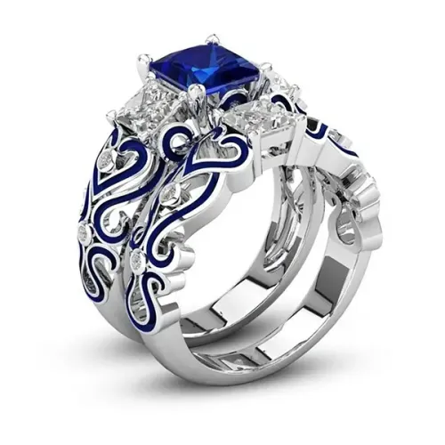 Парные кольца из бижутерного сплава с посеребрением и вставками из фианитов.