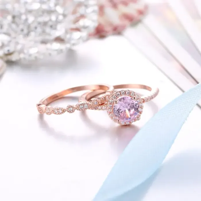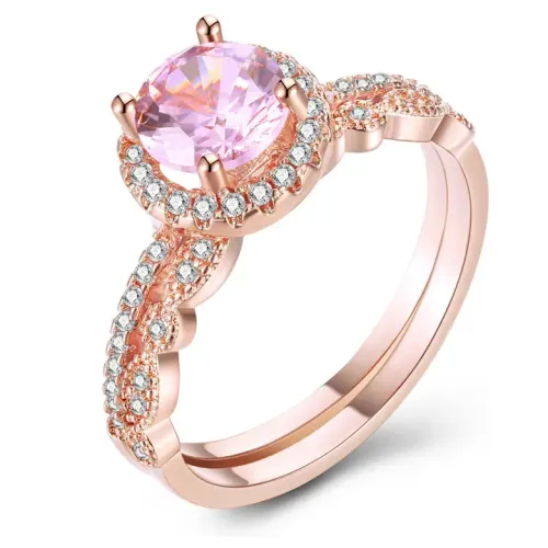 Парные кольца из бижутерного сплава с покрытием розового золота и вставками из фианитов.