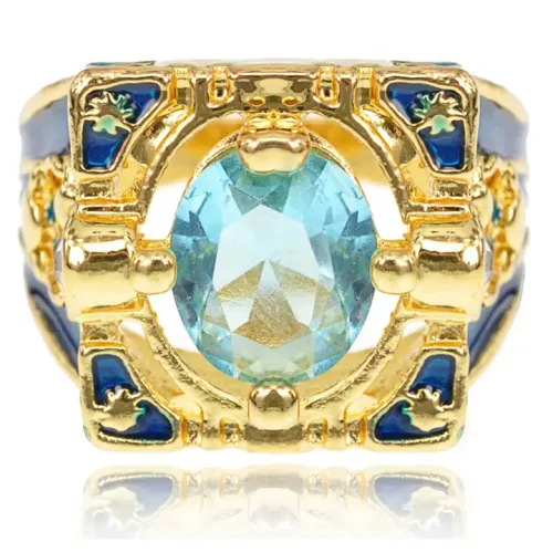 Кольцо из бижутерного сплава с позолотой и вставками из фианитов.