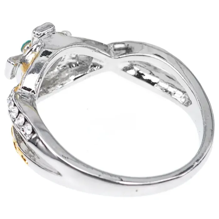 Это изысканное кольцо с посребрением и позолотой станет ярким акцентом в любом образе. Изготовленное из бижутерного сплава, оно отличается прочностью и долговечностью. Размер кольца составляет 18 мм, что делает его универсальным выбором для большинства женщин. Элегантные стразы добавляют блеска и утонченности, подчеркивая индивидуальность обладательницы. Кольцо идеально подходит для повседневной носки или особых случаев, придавая шарм любому наряду.