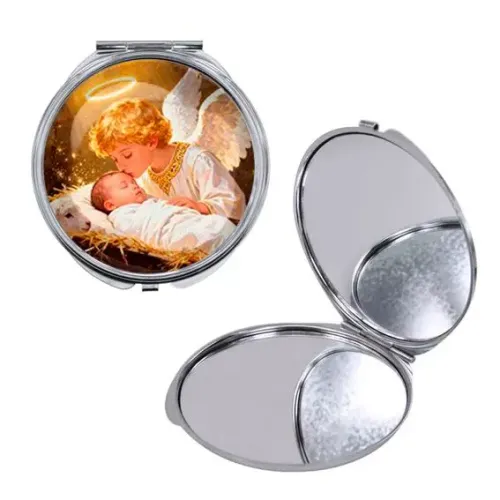 Круглое складное зеркало, цвет серебро, Младенец Иисус и ангел C1110016