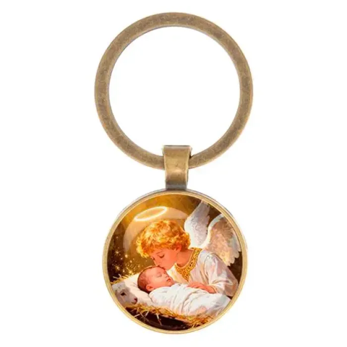 Круглый брелок, цвет бронза, Младенец Иисус и ангел C1110017