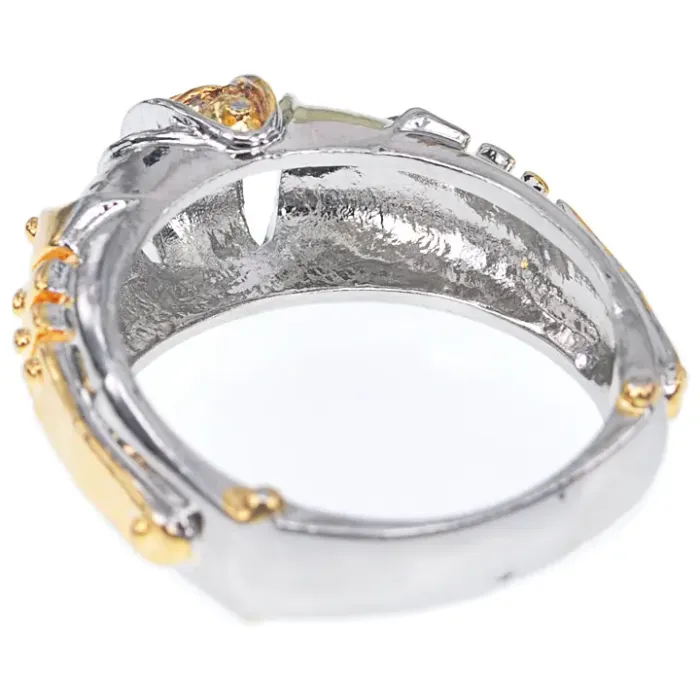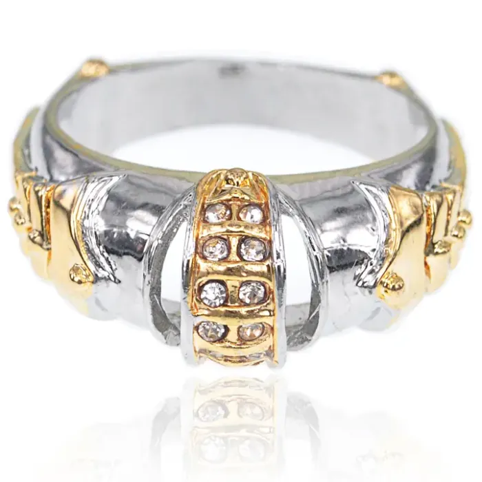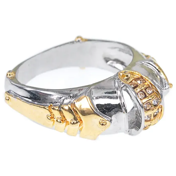 Бижутерное кольцо размером 20 мм из сплава с покрытием под серебро и золото, со вставками из страз.