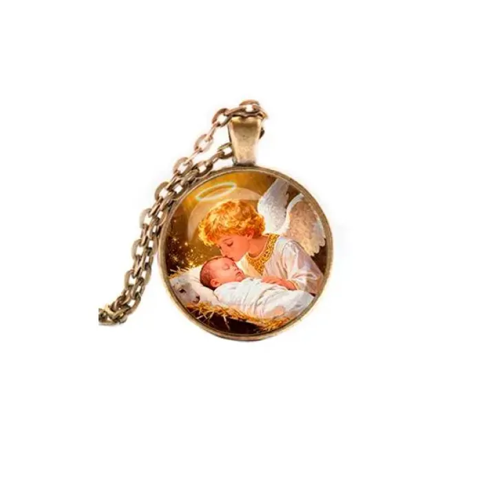 Кулон с изображением Младенца Иисуса и ангела — это не только стильный аксессуар, но и символ духовности и защиты. Изготовленный из бижутерного сплава с покрытием под бронзу и стекла, он станет прекрасным дополнением к любому образу. Диаметр кулона составляет 28 мм, а длина цепочки — 60 см. Застёжка выполнена в виде замка типа лобстер для надежной фиксации. Изображение защищено выпуклой стеклянной линзой, что придаёт ему особую выразительность. Этот кулон может стать значимым подарком или личным оберегом в повседневной жизни.