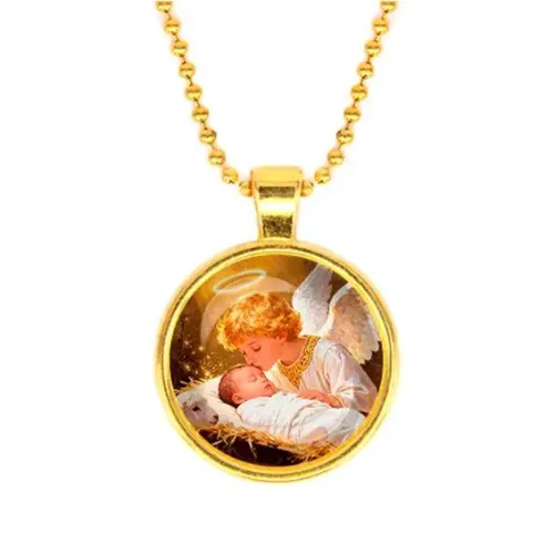 Кулон с изображением Младенца Иисуса и ангела — это не только стильный аксессуар, но и символ веры и надежды. Он станет прекрасным подарком для близких или украшением для особых случаев.