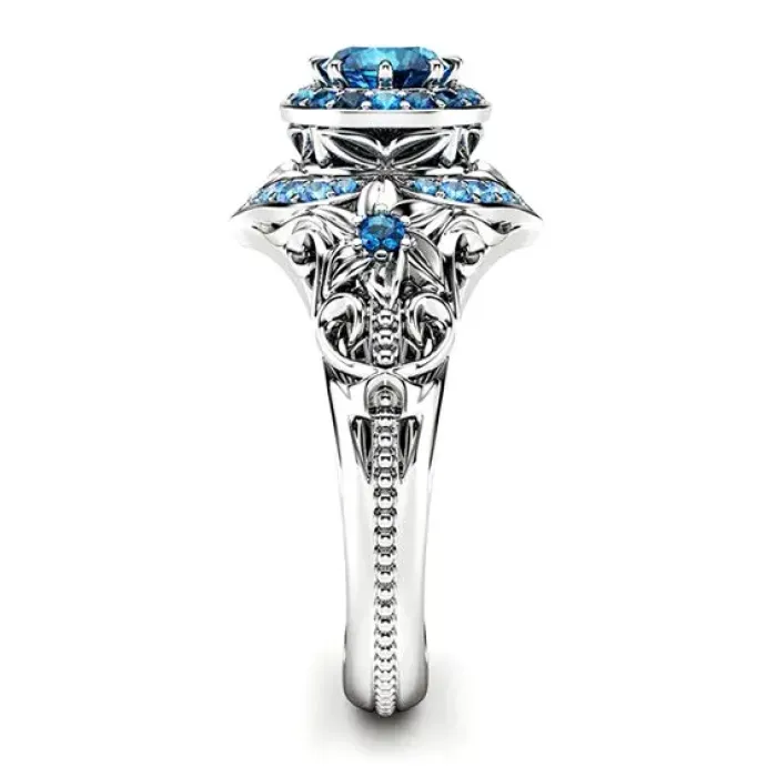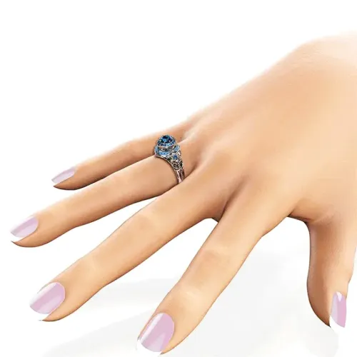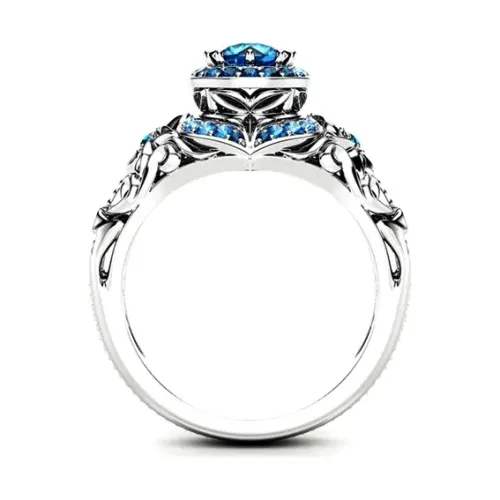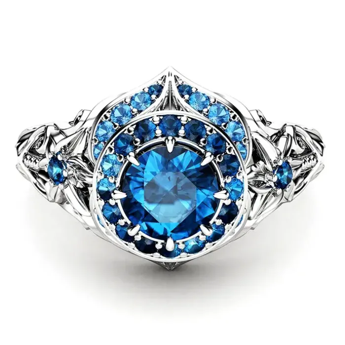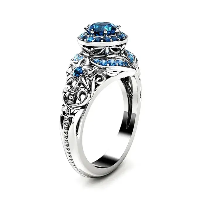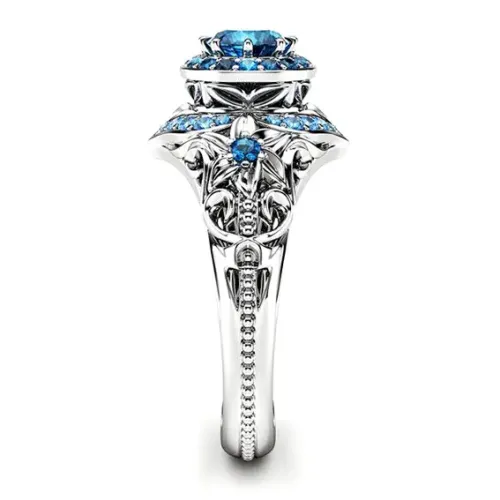 Кольцо с голубыми кристаллами из бижутерного сплава.