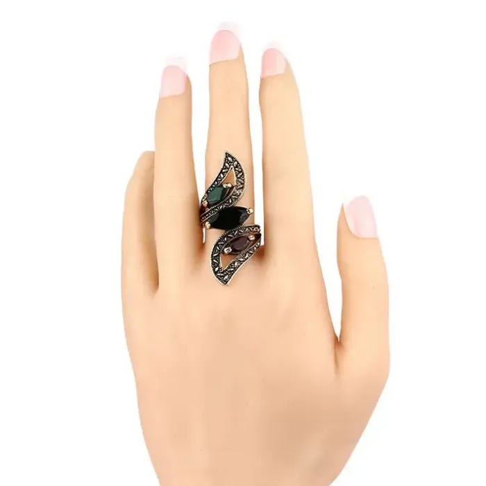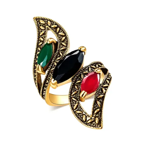 Бижутерное кольцо с кристаллами и покрытием под античное золото.