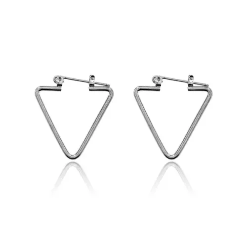 Бижутерные серьги треугольной формы серебристого цвета.