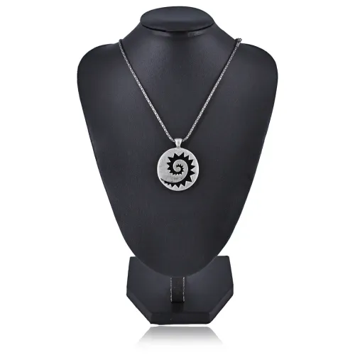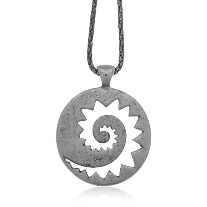 Амулет в виде спирали на цепочке. Изготовлен из металла с покрытием под серебро.