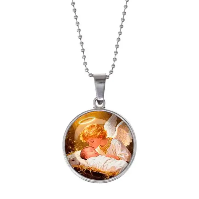 Кулон с изображением Младенца Иисуса и ангела — это не только стильный аксессуар, но и символ веры и надежды. Он идеально подходит для подарка на важные события или как элемент личного оберега.