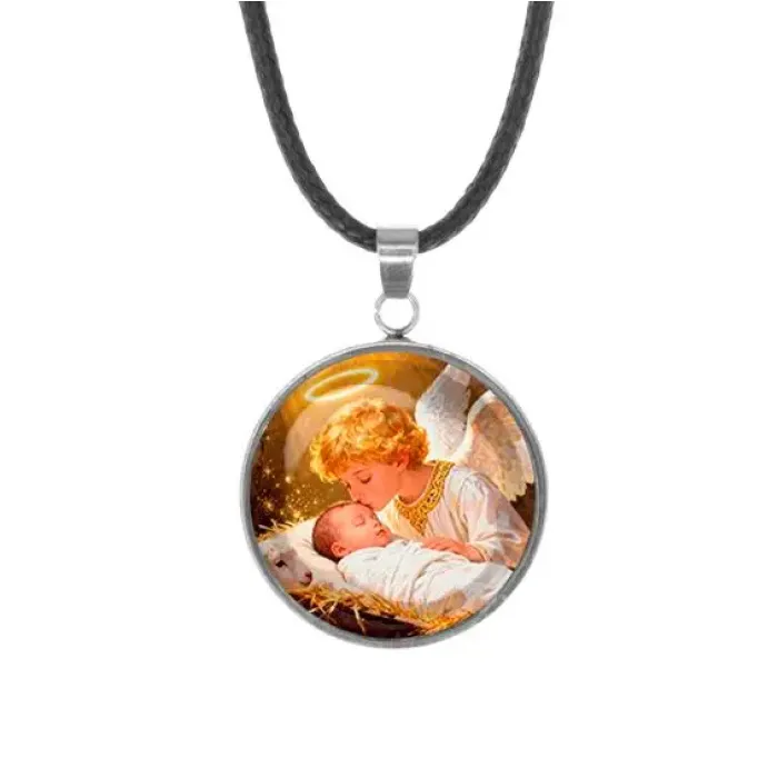 Кулон-амулет из нержавеющей стали — это не только стильное украшение, но и символ веры. Изображение Младенца Иисуса и ангела под выпуклой стеклянной линзой создает эффект глубины и яркости. Диаметр кулона составляет 26 мм, а линза имеет диаметр 25 мм, что делает его заметным акцентом в любом образе.