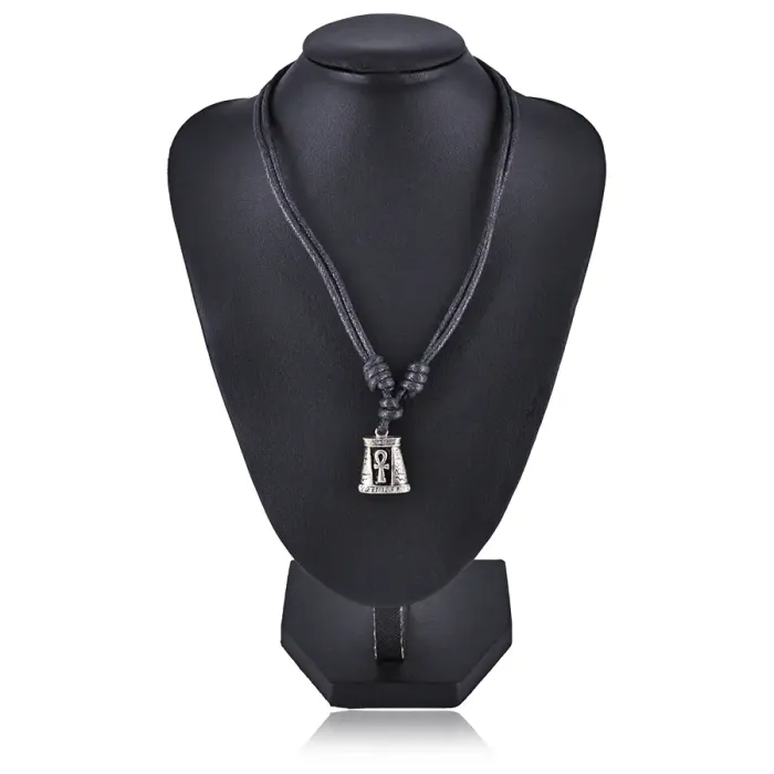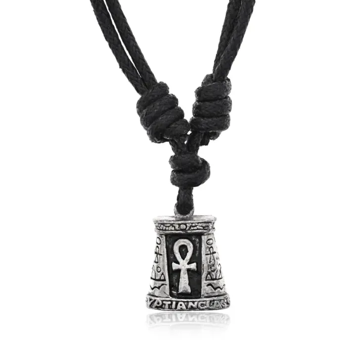 Металлический амулет Анкх с покрытием под серебро на шнурке.