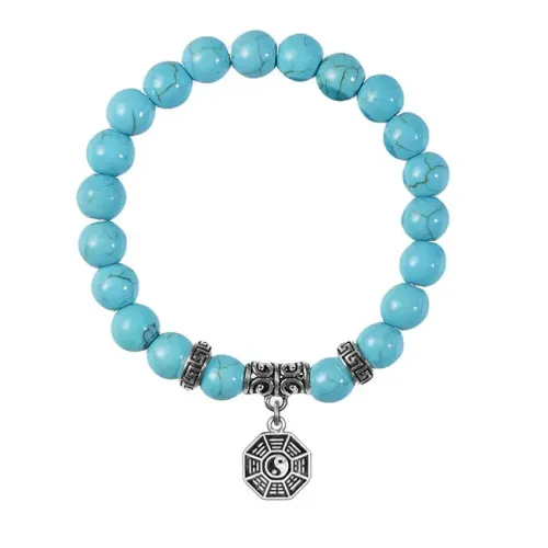 Браслет-амулет из синтетической бирюзы с подвеской в виде символа Багуа.