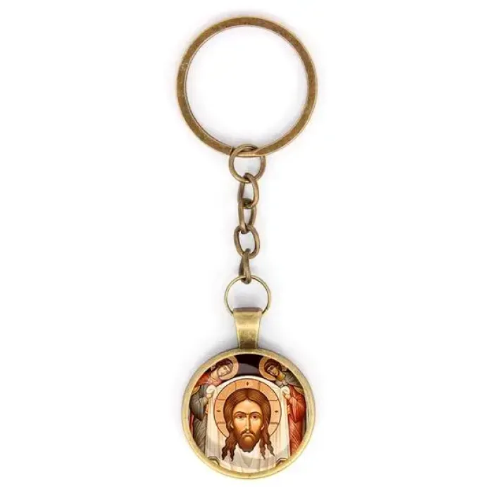 Круглый брелок, цвет бронза, с цепочкой, Спас нерукотворный C1111018