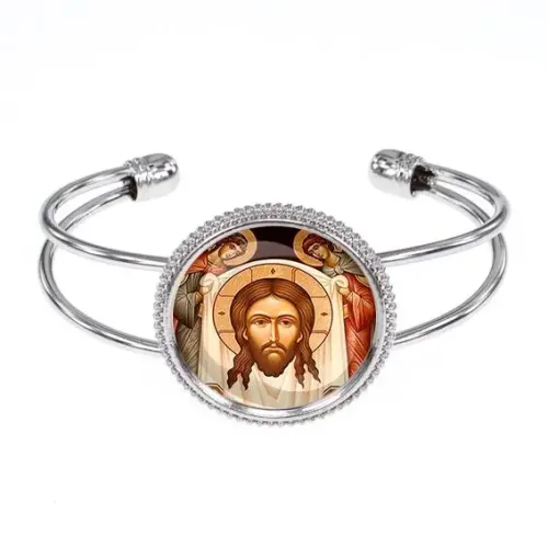 Браслет с изображением Спаса Нерукотворного — это не только стильный аксессуар, но и символ духовной защиты. Изготовленный из бижутерного сплава с покрытием под серебро, он станет прекрасным подарком для близкого человека или элементом личного стиля. Основные особенности: