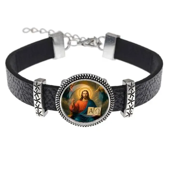 Кожаный браслет «Альфа и Омега» — это стильный аксессуар с глубоким символическим значением. Изображение диаметром 20 мм под выпуклой стеклянной линзой придаёт изделию уникальность и элегантность. Регулируемый размер позволяет носить браслет на любой руке, что делает его универсальным дополнением к любому образу.