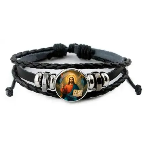 Кожаный браслет «Альфа и Омега» — это стильный аксессуар с глубоким символическим значением. Он олицетворяет единство начала и конца, что делает его идеальным подарком для тех, кто ценит философские идеи. Браслет выполнен из искусственной кожи и украшен изображением диаметром 20 мм под выпуклой стеклянной линзой.