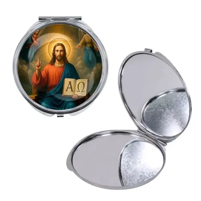 Круглое складное зеркало, цвет серебро, Альфа и омега C1112016