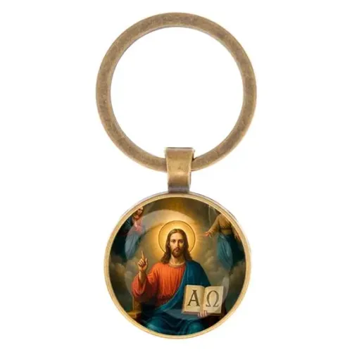 Круглый брелок, цвет бронза, Альфа и омега C1112017