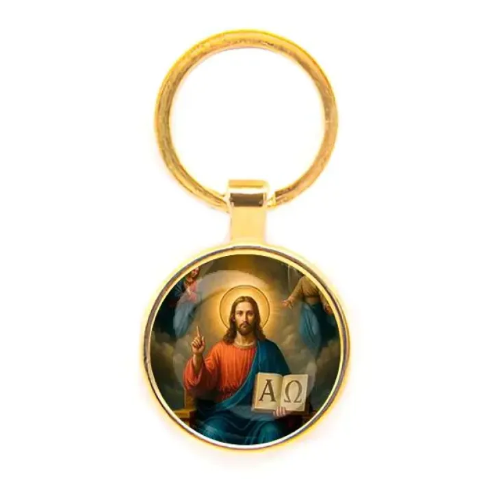Круглый брелок, цвет золото, Альфа и омега C1112019