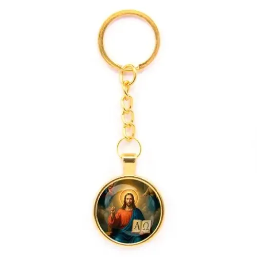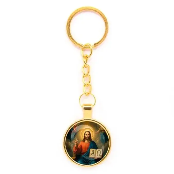 Круглый брелок, цвет золото, с цепочкой, Альфа и омега C1112020