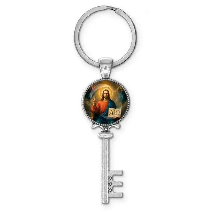 Брелок ключ, цвет серебро, с кольцом для ключей, Альфа и омега C1112044