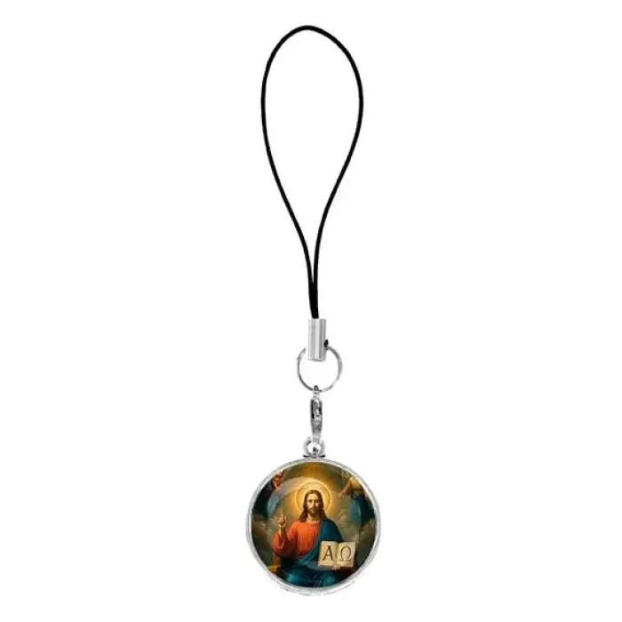 Подвеска для телефона, цвет серебро, со шнурком, Альфа и омега C1112060