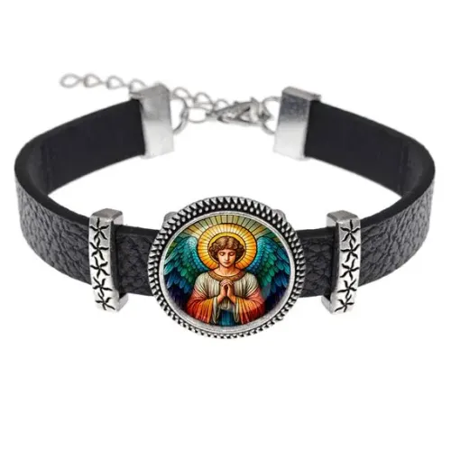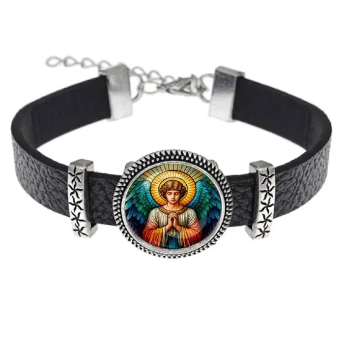 Браслет из кожи с изображением Ангела-хранителя — это не только стильный аксессуар, но и символ защиты и заботы. Он станет отличным подарком для близкого человека или украшением для себя.