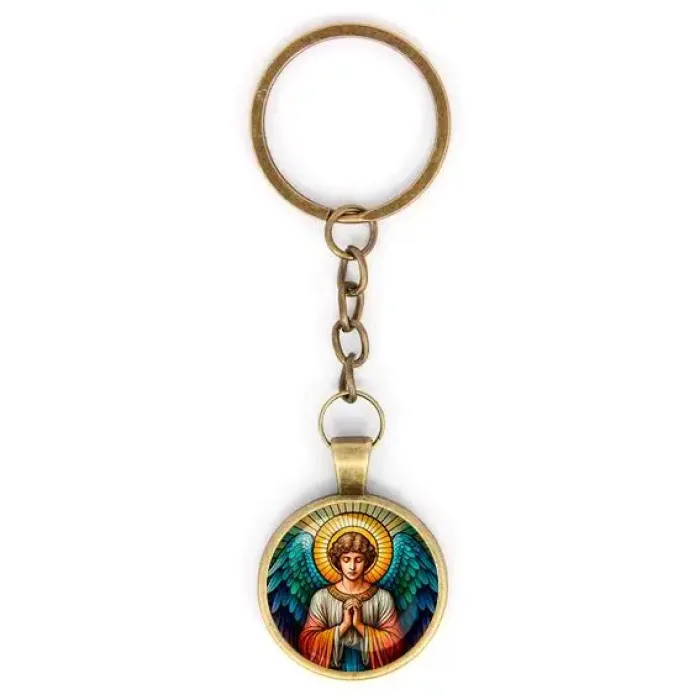 Круглый брелок, цвет бронза, с цепочкой, Ангел хранитель C1113018