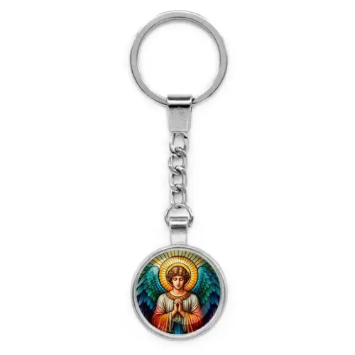 Круглый брелок, цвет серебро, с цепочкой, Ангел хранитель C1113022