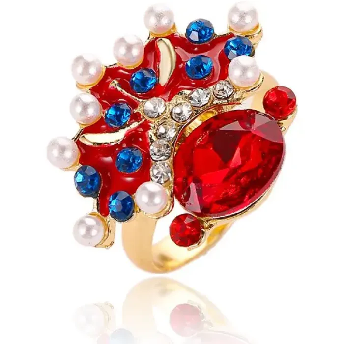 Безразмерное кольцо с дизайном «Индеец» из бижутерного сплава с декоративными вставками.