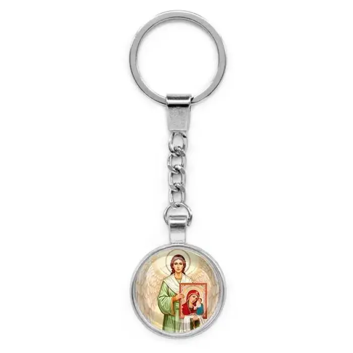 Круглый брелок, цвет серебро, с цепочкой, Ангел с иконой C1114022