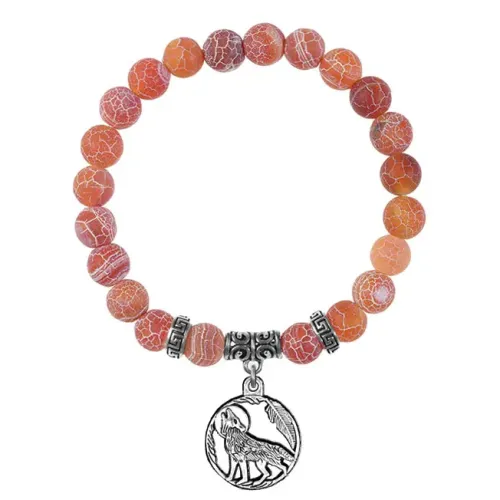 Браслет-амулет из натурального африканского агата с подвеской в виде волка из бижутерного сплава.