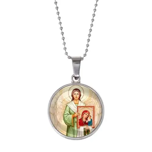 Кулон «Ангел с иконой» — это изысканное украшение, которое сочетает в себе духовный символизм и элегантный дизайн. Он выполнен из бижутерного сплава с покрытием под серебро и дополнен стеклянной линзой, защищающей изображение. Этот кулон станет прекрасным подарком для тех, кто ценит красоту и глубокий смысл в аксессуарах.