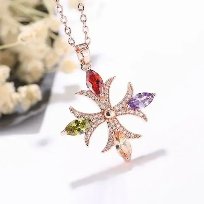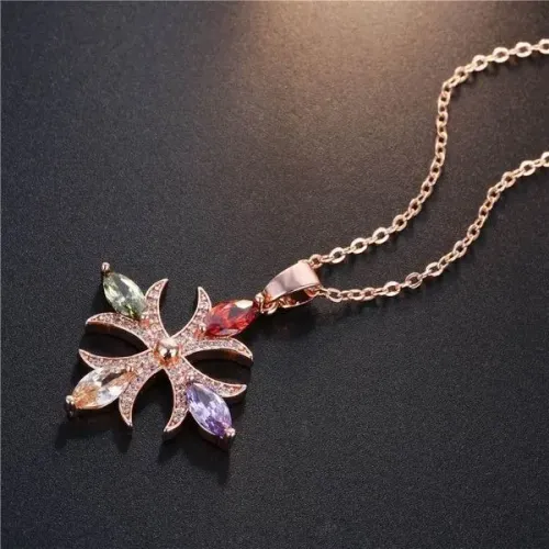 Кулон из бижутерного сплава с позолотой и вставками из фианитов на регулируемой цепочке.
