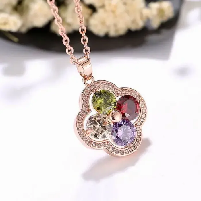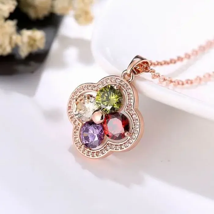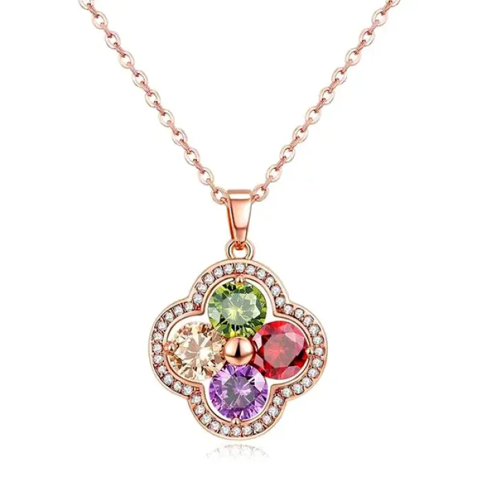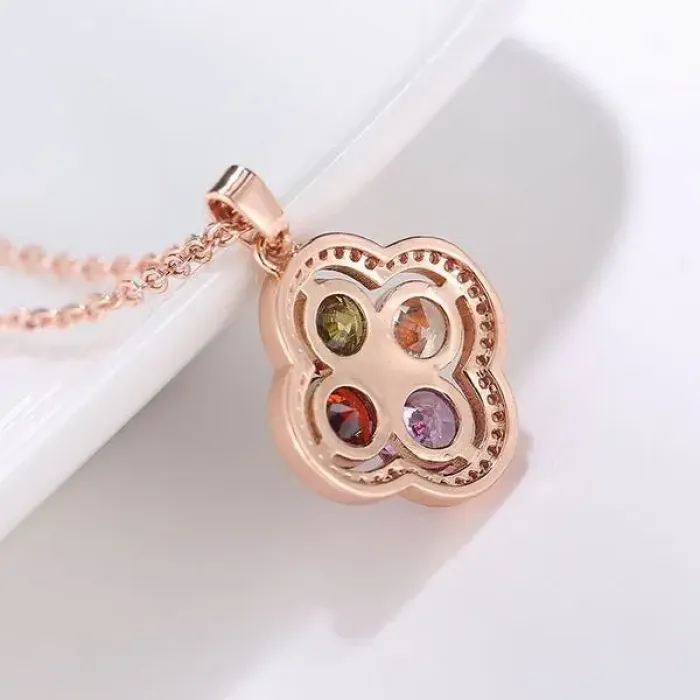 Кулон из бижутерного сплава с золотым покрытием и вставками из фианитов на цепочке с замком-лобстером.