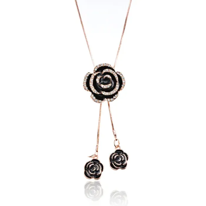Кулон в виде розы на цепочке. Изготовлен из бижутерного сплава с покрытием под золото и эмалью, украшен стразами.