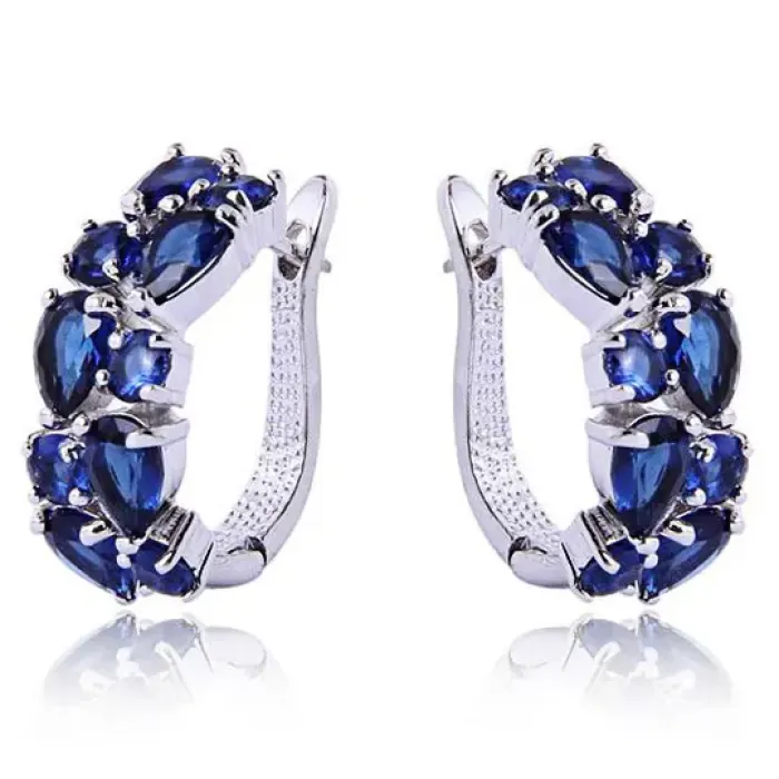 Серьги из бижутерного сплава с посеребрением и вставками из фианитов, на английском замке.