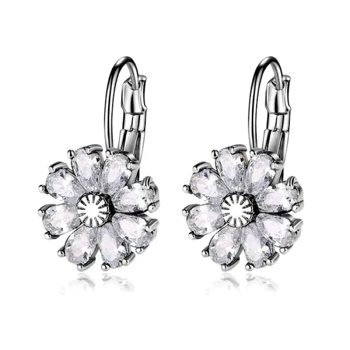 Материал и изготовление: Бижутерный сплав, покрытие серебром, вставки Cubic Zirconia (фианиты), замок типа левербэк.